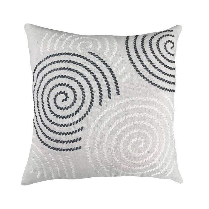 Almofada de Linho Cru 039-37 Bordado Preto e Branco 52x52 - Decortêxtil