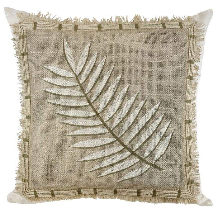 Descrição Almofada de Linho Cru 119-01 Juta com Bordado 52x52 - Decortêxtil