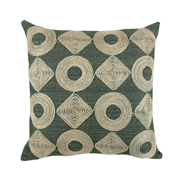Almofada de Linho Verde Rami 036-22 Bordado 52x52 - Decortêxtil