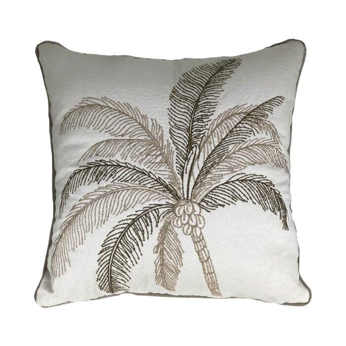 A almofada coqueiro, traz um estilo clássico moderno, em tom de off white no fundo com detalhes bordados em tons de bege/marrom. Confeccionada em veludo, possui um toque macio e é perfeito para decorar todos os ambientes. Almofada com enchimento. Possui acabamento em vivo e zíper invisível.
