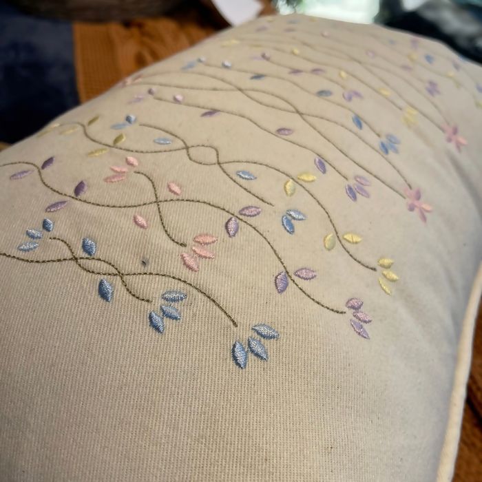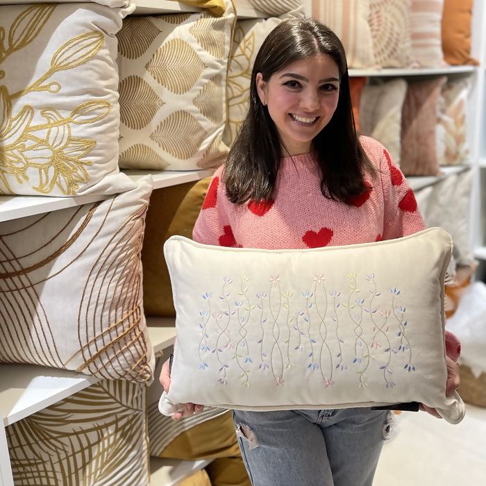 Almofada em Sarja com Bordados Florais