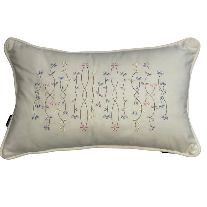 Almofada Sarja Linho Cru com Bordado Fino Floral 190-07 32x52 - Decortêxtil