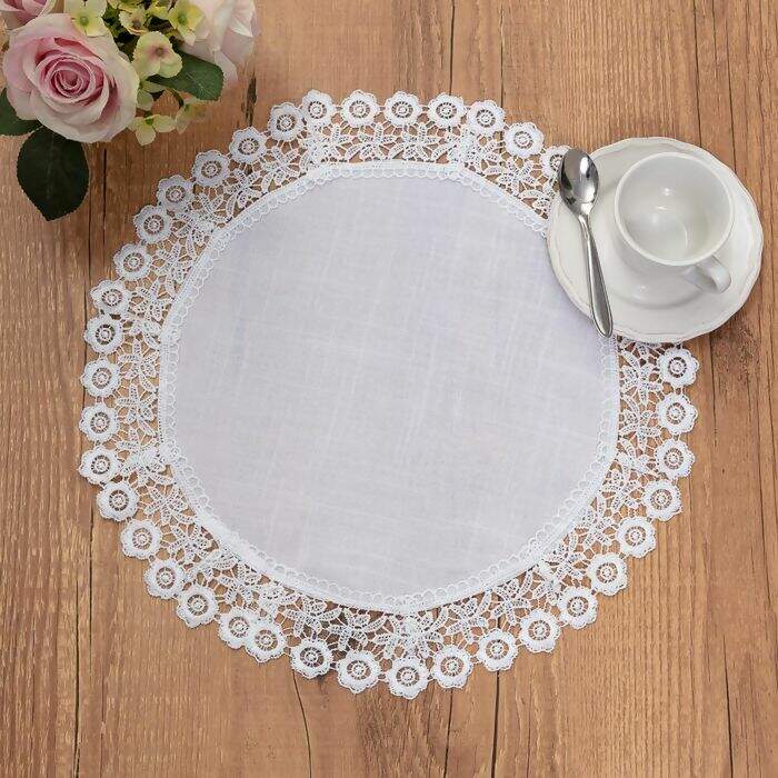 O Kit Sousplat Redondo Renda Inglesa Indonésia é confeccionado em material 100% poliéster, medindo 38cm de diâmetro, ideal para trazer personalidade para sua mesa posta. Seus detalhes delicados em bordado enobrecem a peça e transmitem muita leveza ao ambiente, além disso, é facilmente encaixado em diversas composições.