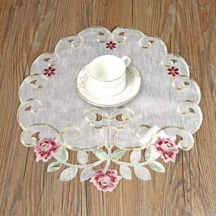 O Kit Sousplat Redondo Renda Inglesa Indonésia é confeccionado em material 100% poliéster, medindo 38cm de diâmetro, ideal para trazer personalidade para sua mesa posta. Seus detalhes delicados em bordado enobrecem a peça e transmitem muita leveza ao ambiente, além disso, é facilmente encaixado em diversas composições.