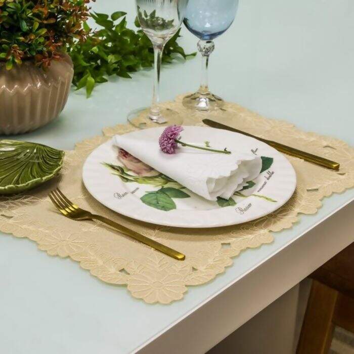- Pode ser usado tanto como toalha de bandeja quanto como jogo americano.