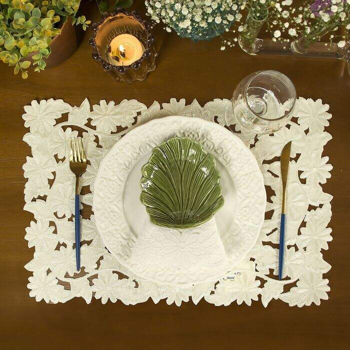 Descrição Americano / Toalha de Bandeja Bordada Requinte Perla 35 x 50 cm 2 pçs - Argivai