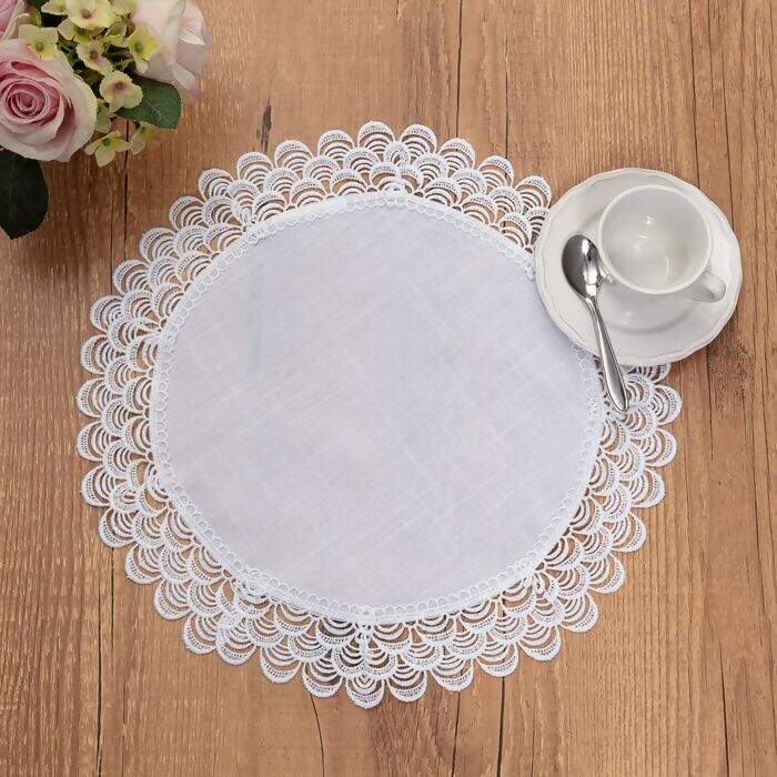 O Kit Sousplat Redondo Renda Inglesa Indonésia é confeccionado em material 100% poliéster, medindo 38cm de diâmetro, ideal para trazer personalidade para sua mesa posta. Seus detalhes delicados em bordado enobrecem a peça e transmitem muita leveza ao ambiente, além disso, é facilmente encaixado em diversas composições.