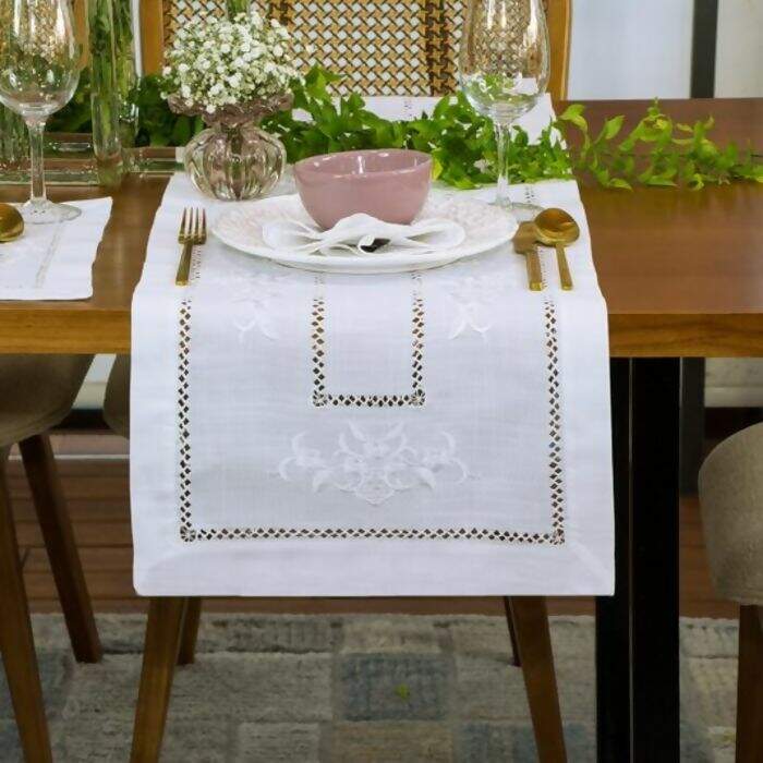 Descrição Caminho de Mesa Bordado Cristal - Argivai