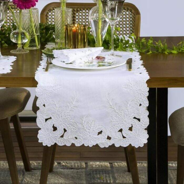 Descrição Caminho de Mesa Bordado Passione Branco - Argivai