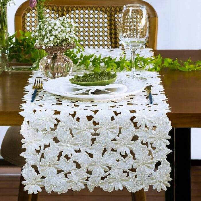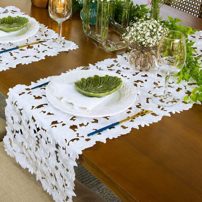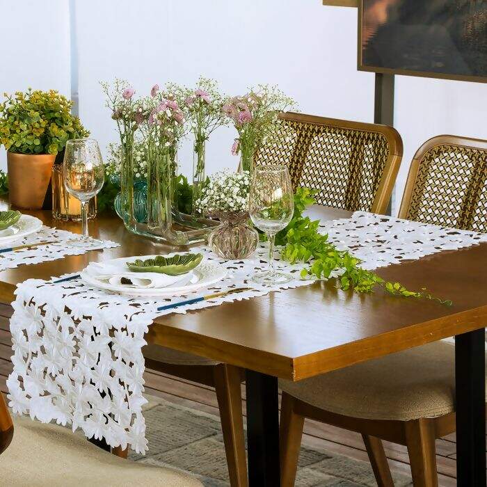 Descrição Caminho de Mesa Bordado Requinte Blanc - Argivai