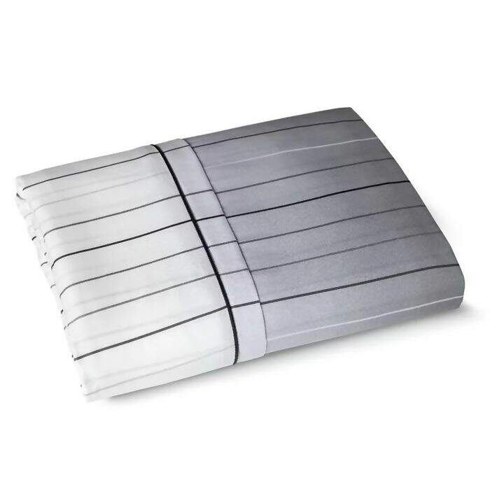 A sútil passagem de cores entre o branco e o preto da estampa representa a transição entre dia e noite. O padrão de linhas, que se unem perfeitamente, vem para provocar a sensação de profundidade ao ambiente.