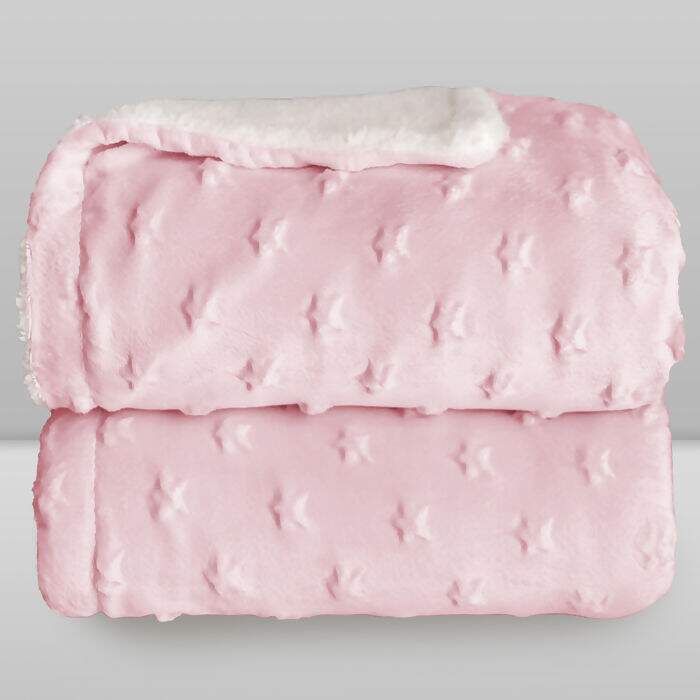 Cobertor para Bebês Plush com Sherpa Stars Rosa Bebê - Laço Bebê