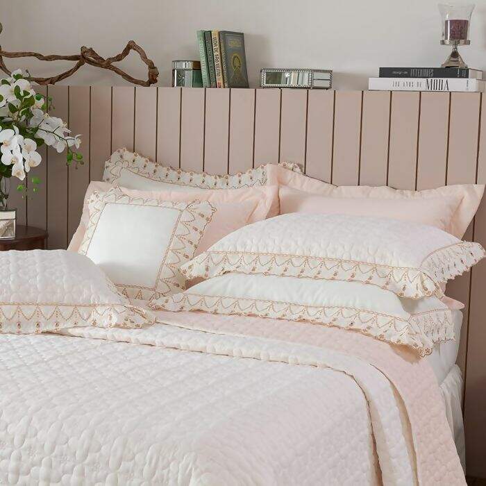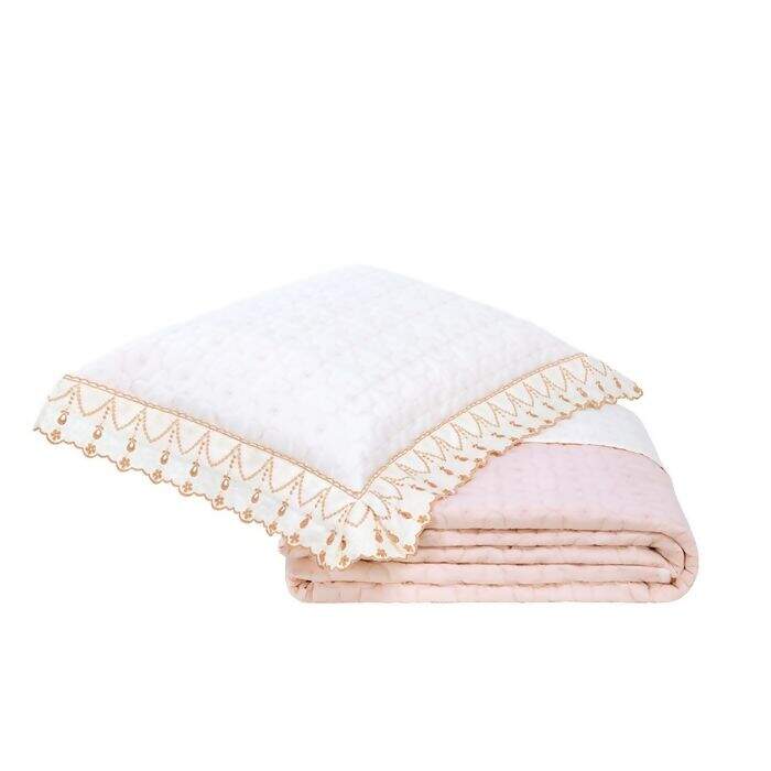Cobre Leito / Colcha Bordada Charlote Sal Rosa / Palha Super King 3 peças - Lavive