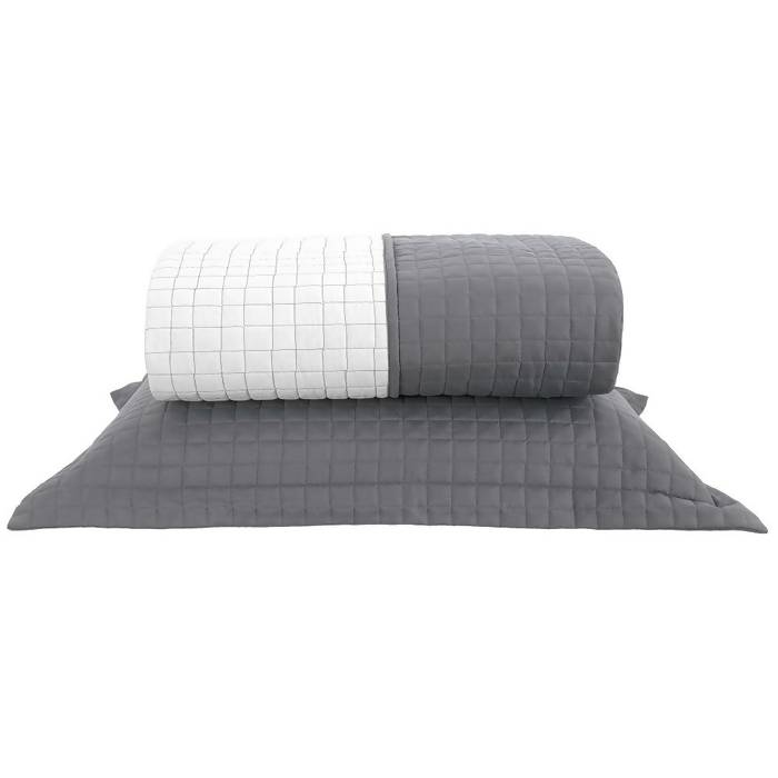 Cobre Leito / Colcha Plaza Microfibra Griss com Branco Solteiro 2pç - Lavive