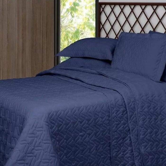 Descrição Cobre Leito / Colcha Satinée 300 Fios Marinho Solteiro - Kacyumara