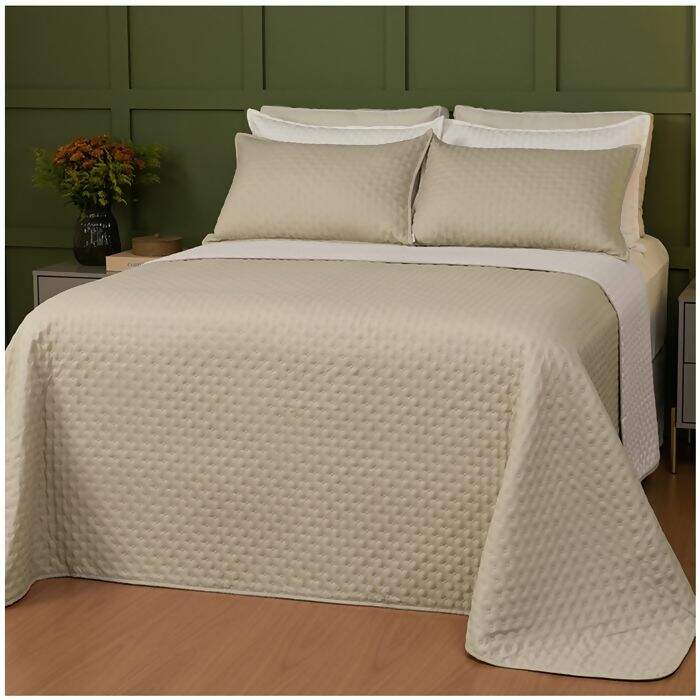 Cobreleito / Colcha Comfy Dupla Face Microfibra Bege com Palha Queen 3pç - Lavive