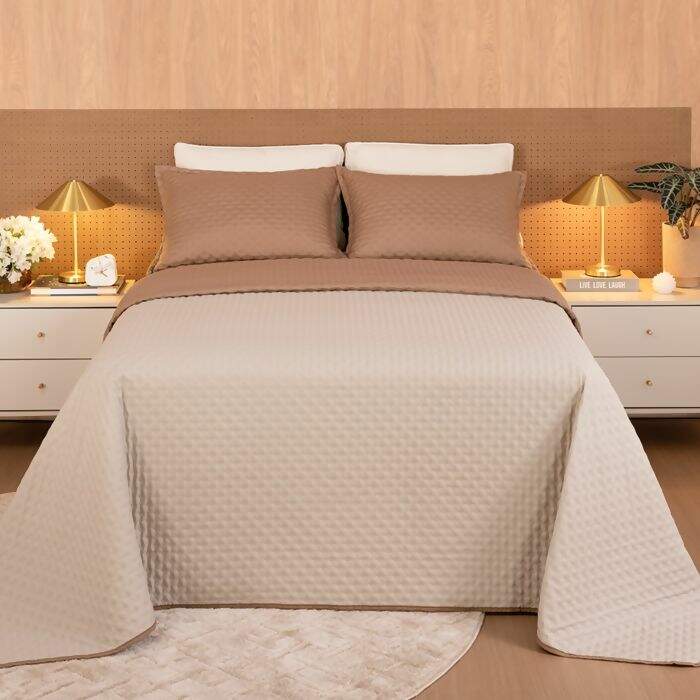 Cobreleito / Colcha Comfy Dupla Face Microfibra Capuccino com Bege Queen 3pç - Lavive