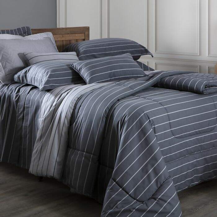 Descrição Cobreleito / Colcha Vintage 200 Fios Listras Chumbo Queen - Kacyumara