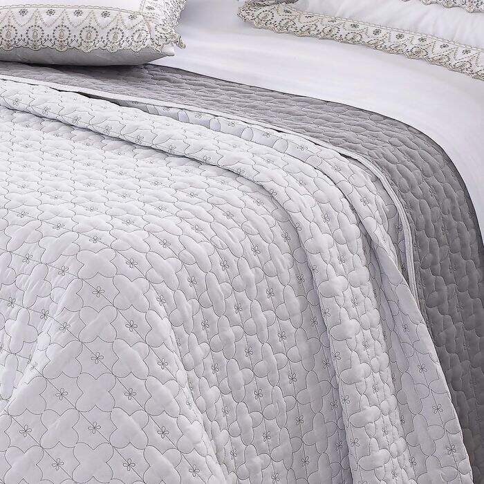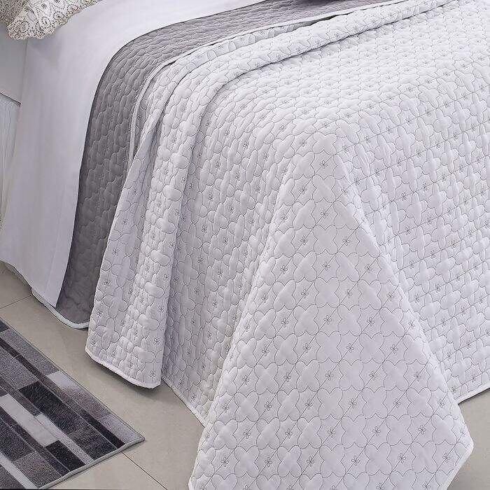 Descrição Cobreleito Bordado Charlote Griss / Branco Solteiro - Lavive