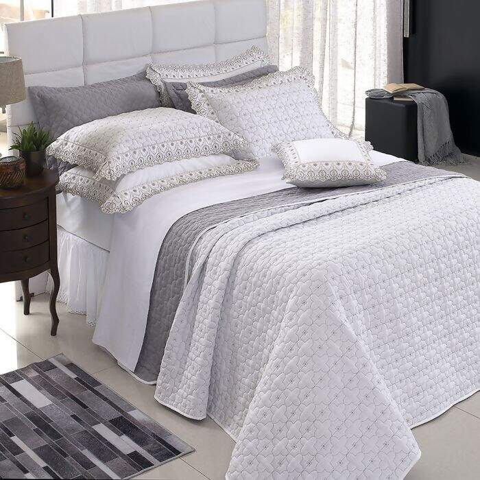 Cobreleito Bordado Charlote Griss / Branco Solteiro - Lavive