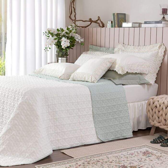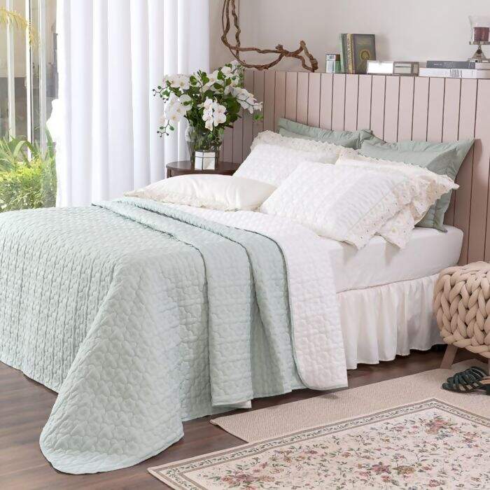 Descrição Cobreleito Bordado Charlote Verde Malva / Palha Solteiro - Lavive