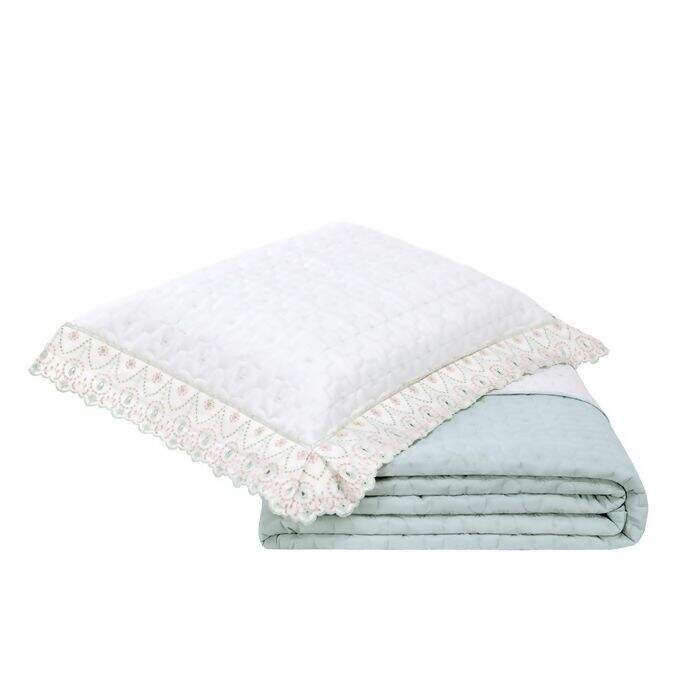 Cobreleito Bordado Charlote Verde Malva / Palha Solteiro - Lavive