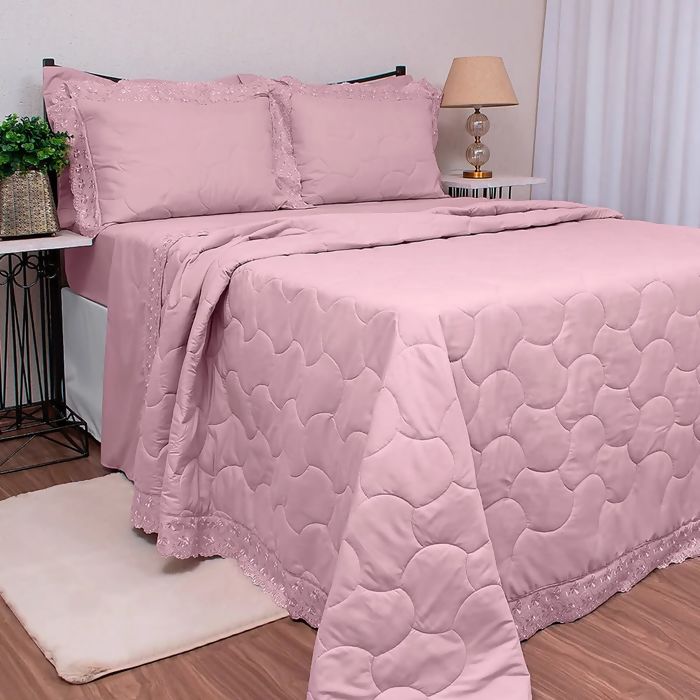 Descrição Cobreleito Bordado Sonata Naira Rosa Casal 3pç - Buettner