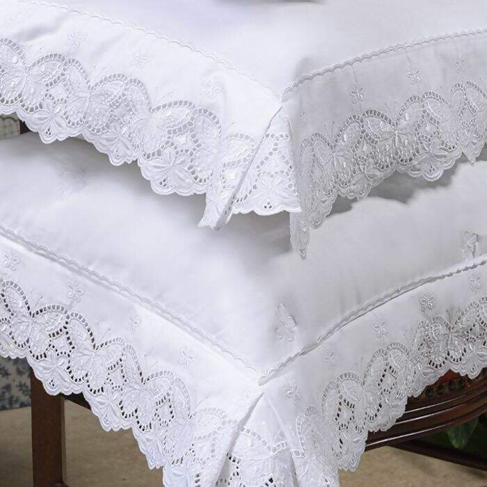 Descrição Cobreleito Butterfly Bordado 400 Fios Branca Super King 3pç - Marken Fassi