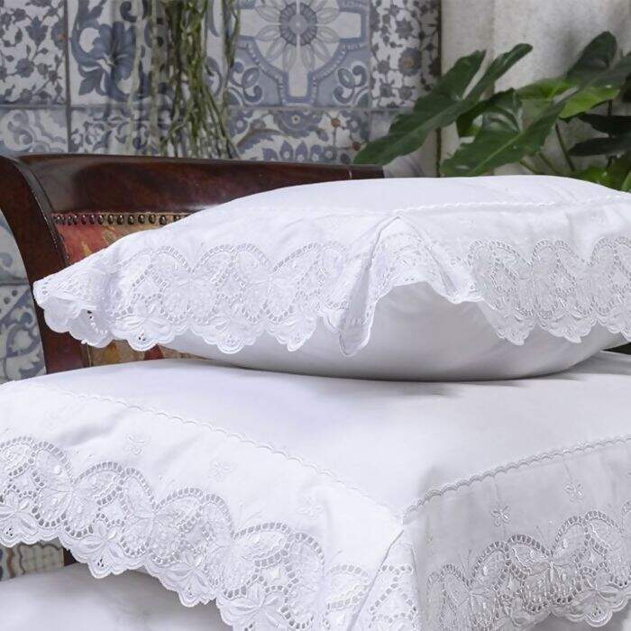 Descrição Cobreleito Butterfly Bordado 400 Fios Branco Queen 3pç - Marken Fassi