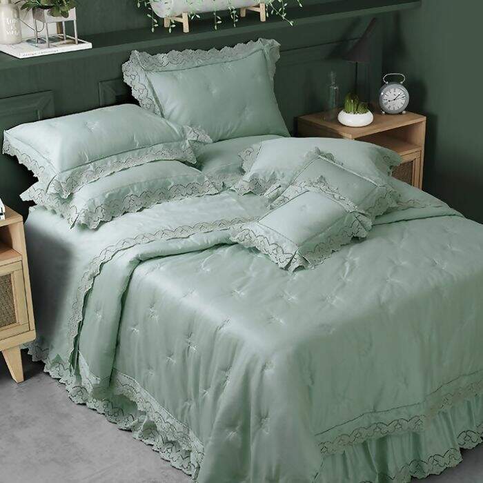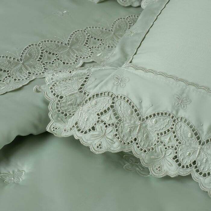 Descrição Cobreleito Butterfly Bordado 400 Fios Verde Queen 3pç - Marken Fassi