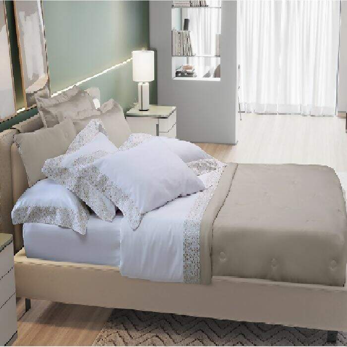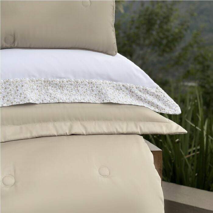 Descrição Cobreleito Milos 300 Fios Bege Solteiro 2pç - Marken Fassi