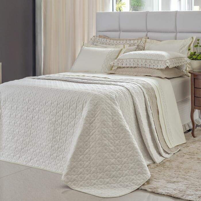 Descrição Colcha / Cobre Leito Bordado Charlote Bege / Palha Solteiro 2 peças - Lavive