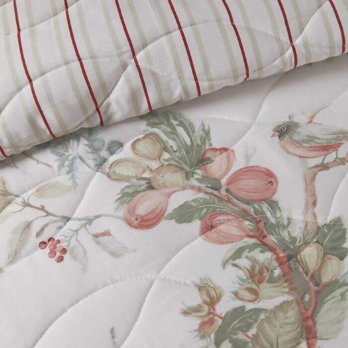 Inspirado pela essência da Toscana e pela beleza das paisagens outonais de Florença, o jogo de colcha casal Carmine celebra a abundância e a serenidade da vida. Os figos, símbolos italianos de sabedoria e generosidade, estampam o tecido com delicadeza e sofisticação, criando um convite à contemplação e ao conforto. Confeccionado em cetim 200 fios 100% algodão, oferece toque macio e luxo incomparável. Com medidas amplas de 2,40m x 2,50 m, a colcha é perfeita para camas grandes, enquanto os porta-travesseiros de 50 cm x 70 cm complementam o visual com elegância. Carmine transforma cada instante em sua cama em uma experiência única de acolhimento e beleza.