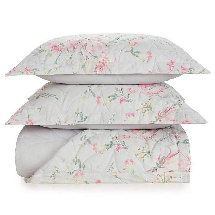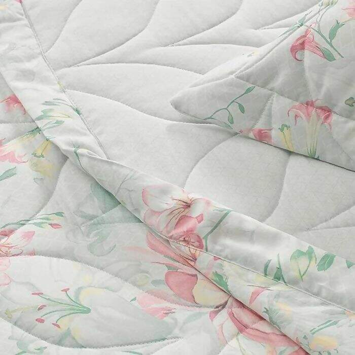 A Colcha Cesine, traz sua inspiração dos dias quentes e ensolarados do verão da Puglia. Transmite encantamento à primeira vista, com requinte das flores silvestres estampadas em tons de verde, rosa e amarelo, e acabamento em alfaiataria, tornando um ambiente leve e delicado. Confeccionado em Cetim 300 fios e 100% Algodão, seu toque é extremamente macio e suave, permitindo que seu corpo abrace e sinta ótimas sensações ao descansar. Possui acabamento mercerizado. Colcha e Porta Travesseiro estampados. Todos esses elementos trazem um acabamento perfeito para a cama.