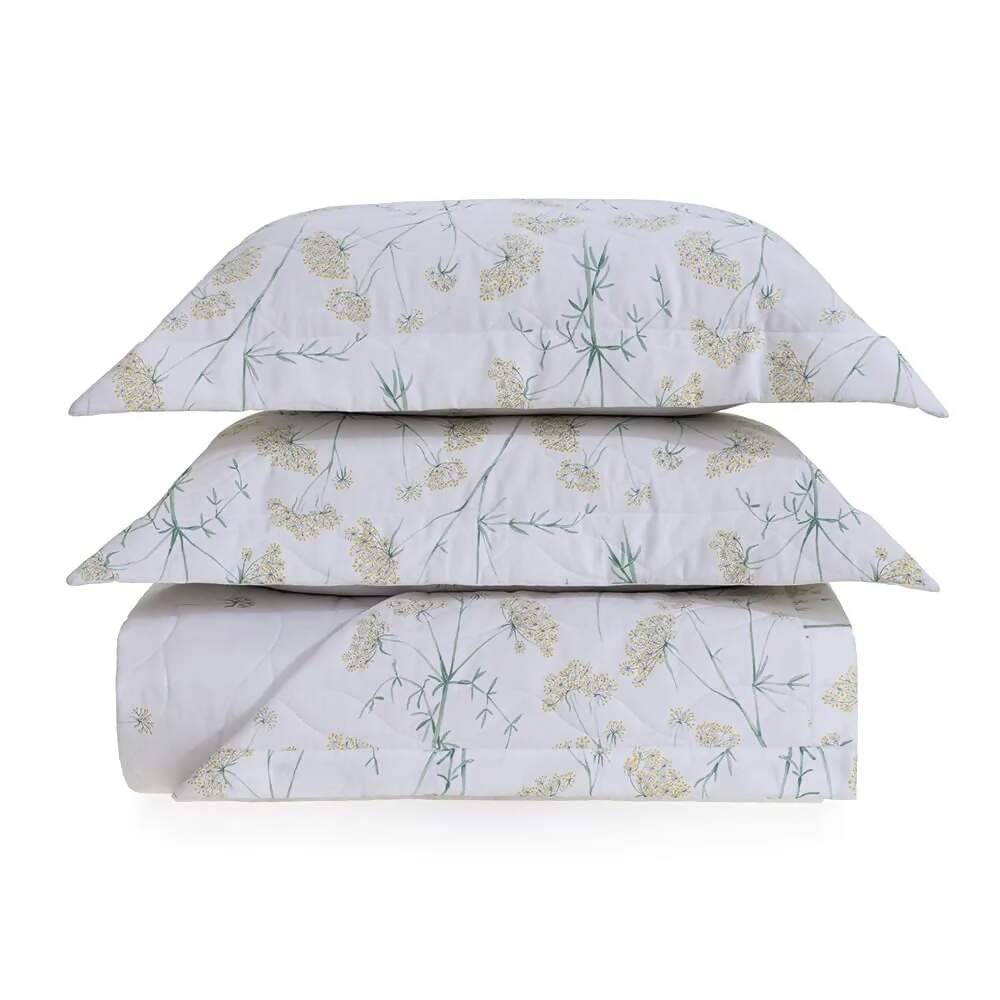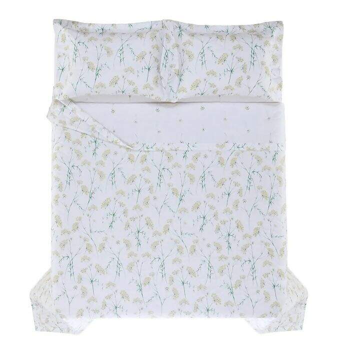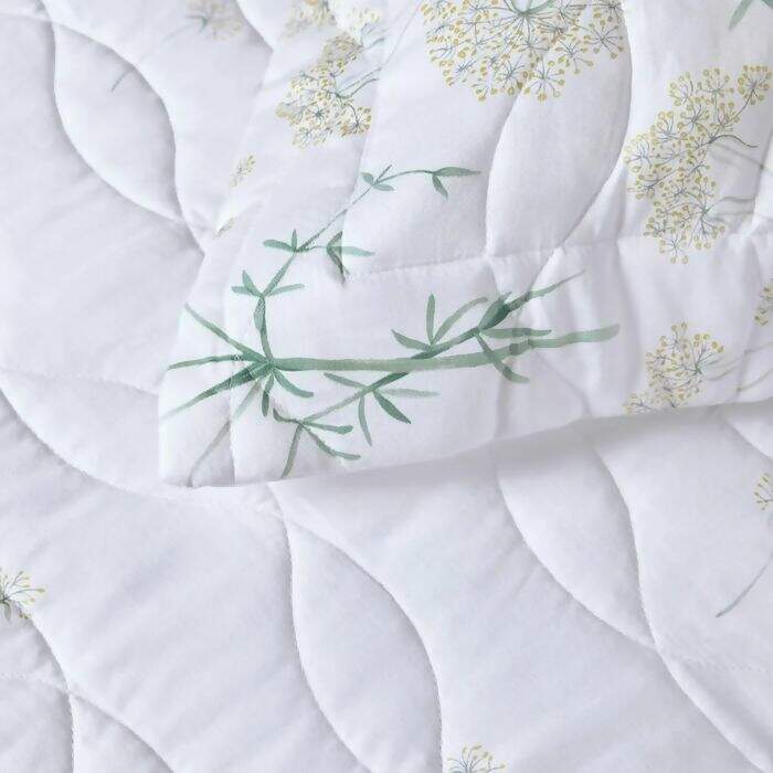 O Jogo de Colcha Queen Finocchio, confeccionado em cetim 200 fios e 100% algodão, captura a essência das paisagens de Cinque Terre, onde o funcho do mar dança ao vento, criando uma atmosfera serena e encantadora. A colcha e os porta-travesseiros estampados dupla face exibem uma delicada aquarela que equilibra perfeitamente tons quentes e frios, trazendo a natureza para dentro do seu quarto. Inspirado pelo movimento suave das plantas à beira-mar, este conjunto oferece uma experiência que alia o frescor das cores ao romantismo das formas. Com o Jogo de Colcha Finocchio, seu ambiente ganha um toque poético e atemporal, ideal para quem valoriza detalhes que evocam a tranquilidade e a beleza natural.