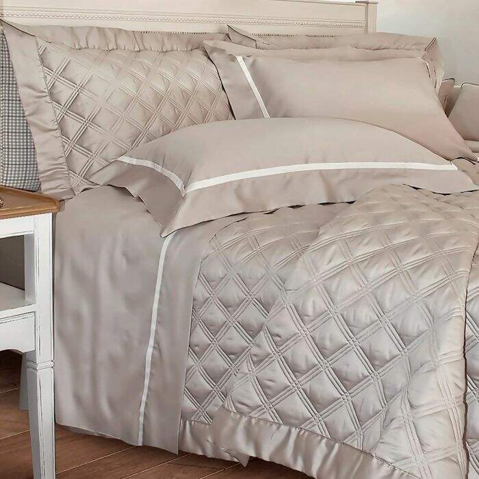 Descrição Colcha Matelada 300 Fios Milão Kaki Areia Queen 3 pç - Artelassê