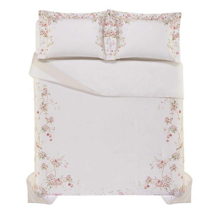 A Coleção Trussardi Mele celebra o despertar da primavera em Bolzano, onde os vales inteiros são cobertos por macieiras em flor, proporcinando um espetáculo natural encantador. Criada com uma meticulosa pintura à mão e transformada em uma estampa digital complexa sobre o cetim de algodão, a cama Mele captura o fascínio e o encanto dessa região alpina italiana, evocando momentos únicos.