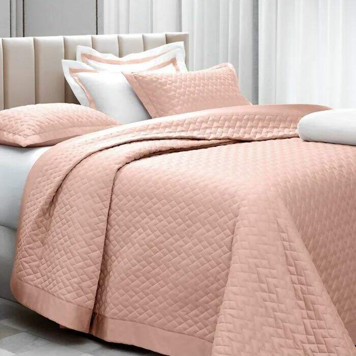 A colcha king Trussardi Spiazzo com estilo básico e elegante que permite fazer diversas composições com os demais itens da coleção, conta com uma cartela de cores clássicas como Rosa Perla, Marmo, Nocciola e Branco. Seu tecido 100% Algodão Egípcio é confeccionado em cetim 300 fios, sua maciez e conforto tornará seu descanso mais prazeroso e seus detalhes enriquecem a cama e o ambiente. A cama Spiazzo se traduz em uma cama clássica e leve, para compor um enxoval sofisticado.A Inspiração vem do estilo Italiano, que possui elegância natural e é rico nos detalhes. Contém 1 colcha matelassada com bordo de 10cm e 2 portas travesseiros com 4 abas de 5cm, trazendo o acabamento perfeito para a cama.