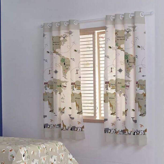 Descrição Cortina com Ilhos Infantil Maps 180 x 200 cm - Santista