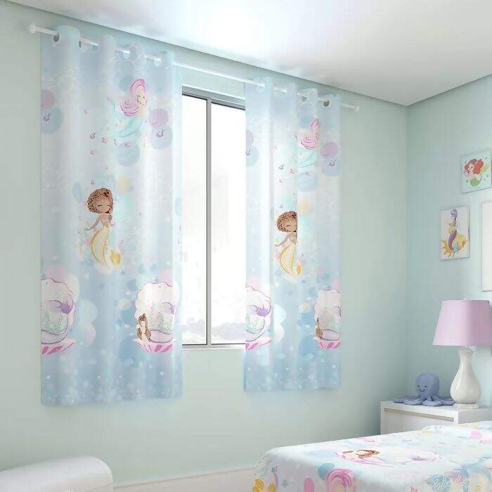 Descrição Cortina com Ilhos Infantil Sereia 180 x 200 cm - Santista