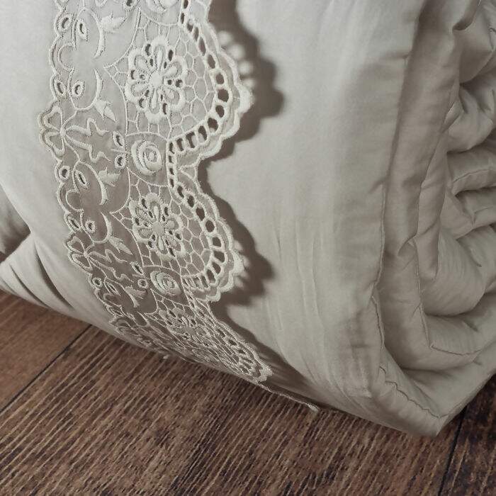 Edredom 400 Fios Bordado Emiliano Kaki Queen - Artelassê