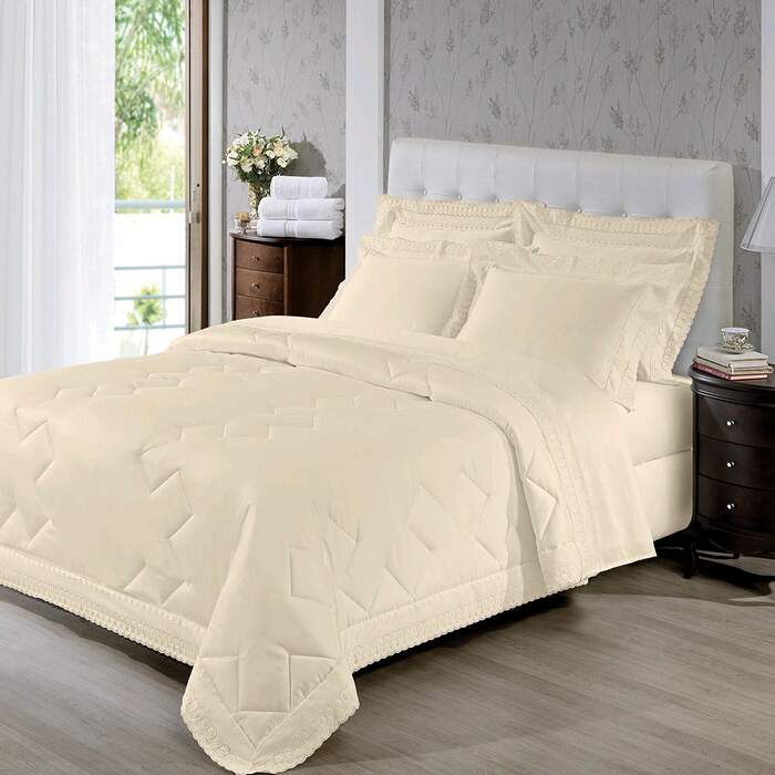 Descrição Edredom Cristal Renascença 300 Fios Pérola Queen - Buettner