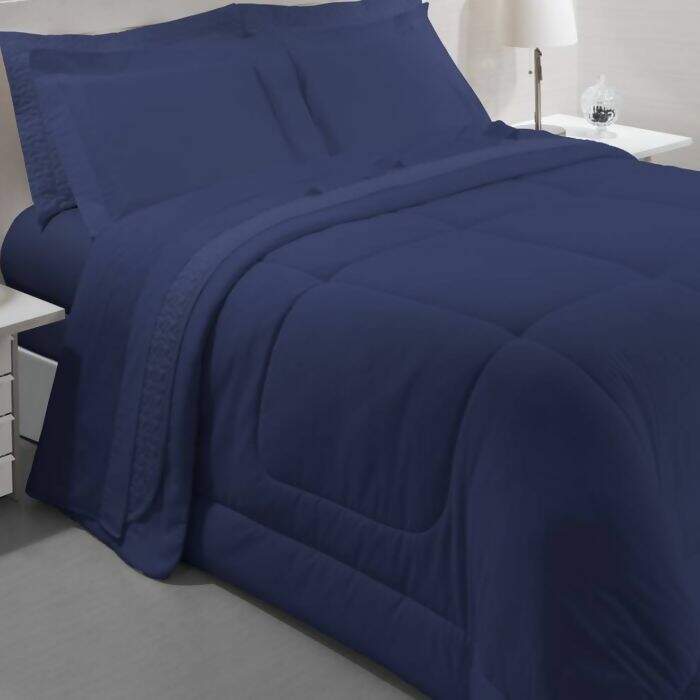 Descrição Edredom Satinée 300 Fios Liso Azul Marinho Solteiro - Kacyumara