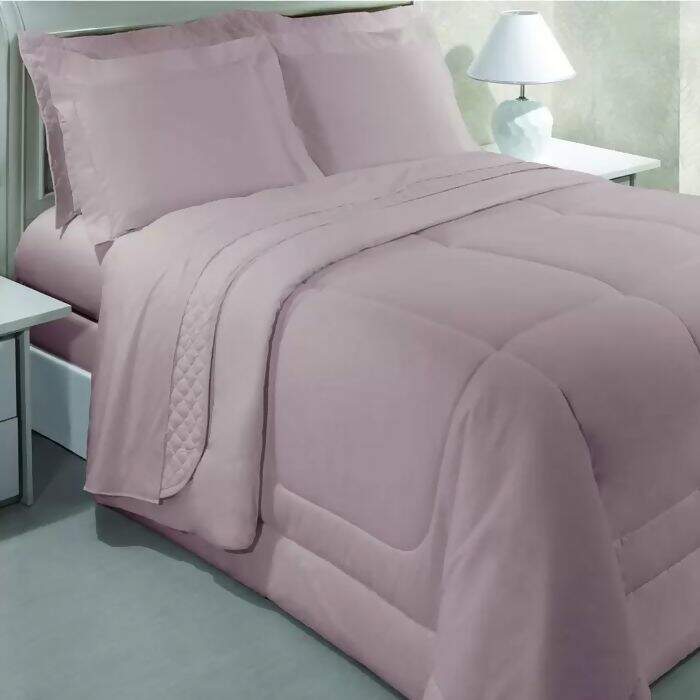Descrição Edredom Vida Bela 200 Fios Liso Rosa Garnê Queen - Kacyumara
