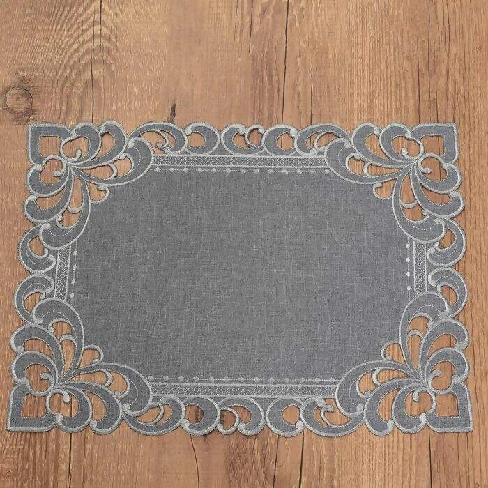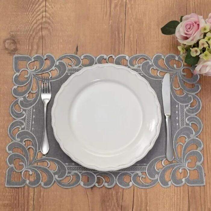 Descrição Jogo Americano / Toalha de Bandeja Bordada Rechillie Prata 35 x 50 cm 2 pçs - Argivai