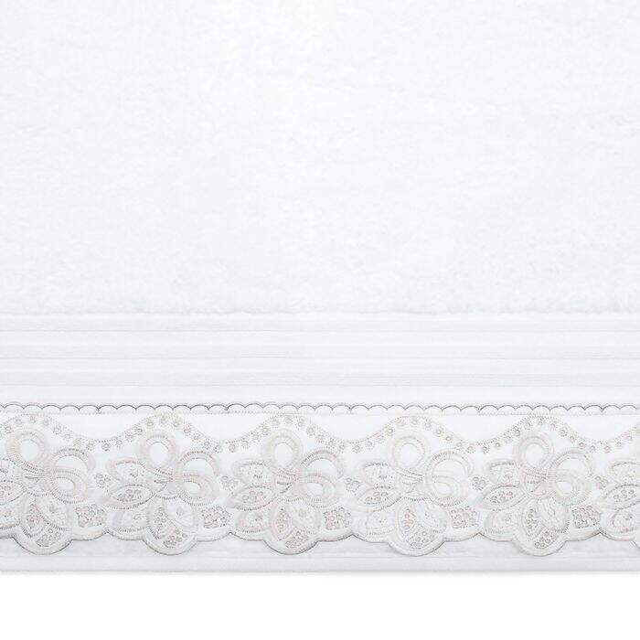 O Jogo de Toalhas 5 Peças Cristal Renda Fiori Buettner com aplicação de renda bordada é um conjunto de peças de alta qualidade e elegância para a decoração do seu banheiro. A delicadeza da renda bordada se destaca e confere um charme a mais nas peças. As toalhas da Linha Cristal são feitas para você que, acima de tudo, preza pelo conforto na hora do banho. Grande sucesso da Buettner, elas são produzidas em Algodão Egípcio, proporcionando uma maior durabilidade, maciez e uma alta capacidade de absorção.