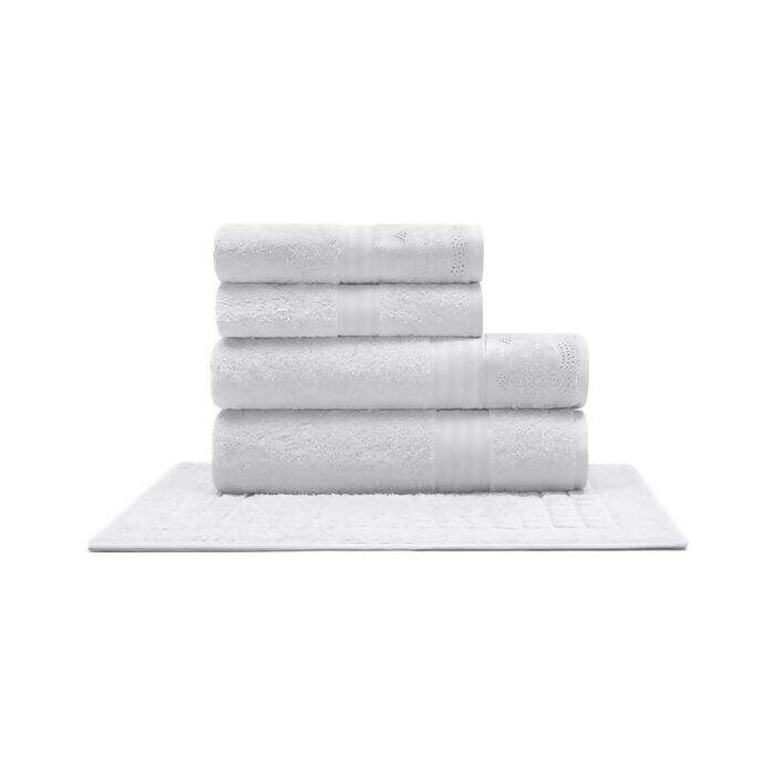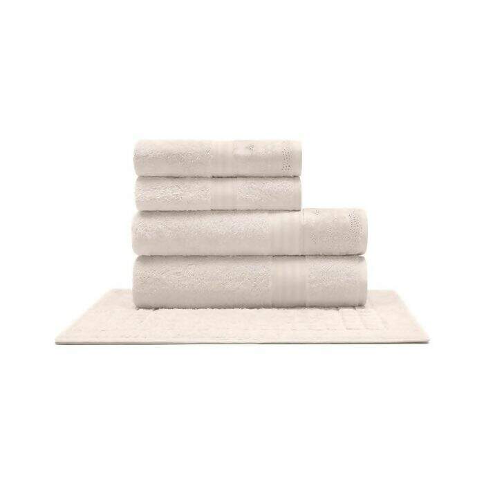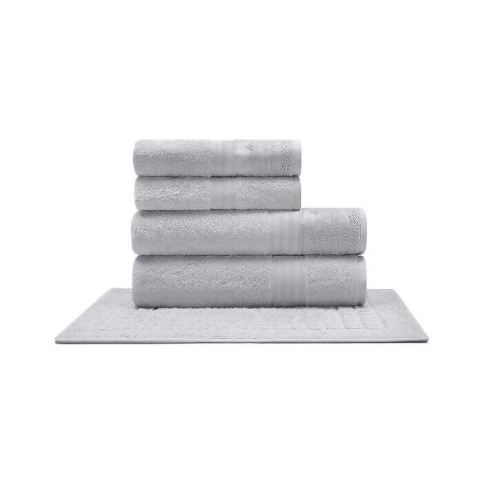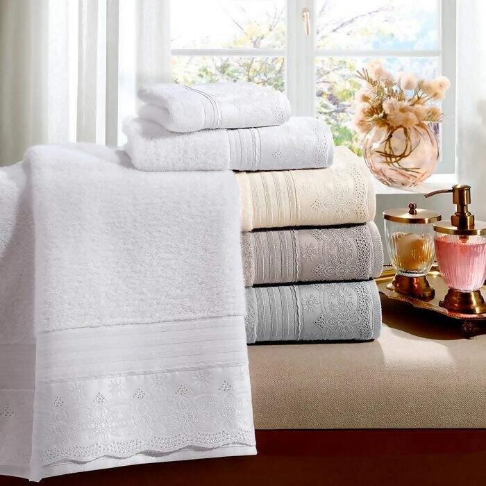 JOGO DE TOALHAS 5 PEÇAS ALGODÃO EGÍPCIO CRISTAL RENDA LUISA