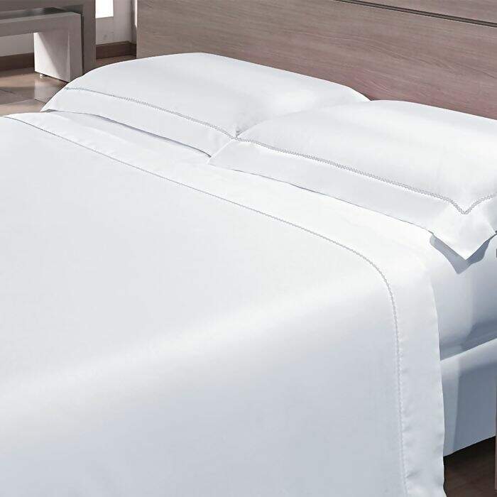 O jogo consiste em lençol de cima com vira, lençol ajustável com elástico e fronhas. É a opção perfeita para quem busca qualidade e requinte.