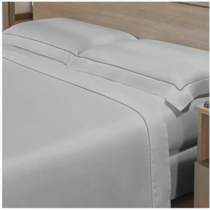 Exclusivo tecido de 300 fios, 100% Algodão, acetinado e com um leve brilho.