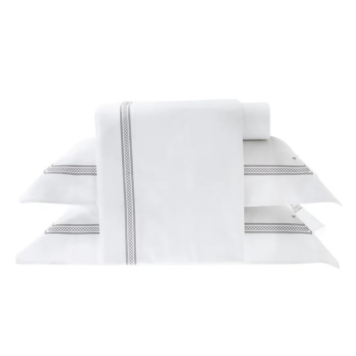 Jogo de Cama 300 Fios Bordado Lusitani Branco / Prata King - Kacyumara